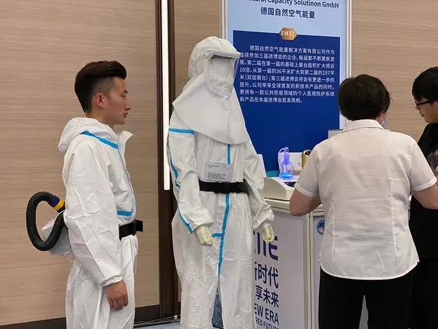 今天的對接會上,醫(yī)療器械及醫(yī)藥保健展區(qū)部分展品精彩“劇透”。德國自然空氣能量解決方案有限公司帶來了一款多合一醫(yī)用個人防護(hù)系統(tǒng),該產(chǎn)品將在第三屆進(jìn)博會上正式全球首發(fā)。