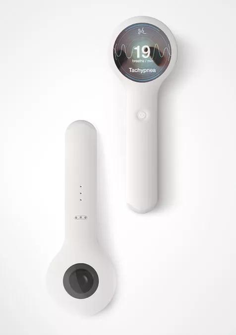 Dr. Loupe 的功能設計頗為下工夫,其下部有呼吸速率傳感器,裝置的上部有一個顯示監(jiān)視器,此外改設備還包括照相機,LED燈,虹膜識別紅外線傳感器和充電端口。充電座還可以投射一個屏幕,對患者的病史和當前診斷數(shù)據(jù)進行光束投射。