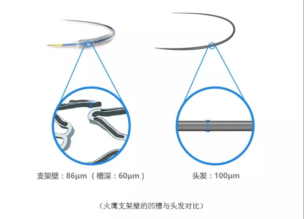 怎樣把藥物完美地“保存”在支架上?經(jīng)過(guò)反復(fù)設(shè)計(jì)和比較,火鷹研發(fā)團(tuán)隊(duì)歷時(shí)15年,選擇并達(dá)成了技術(shù)上最難實(shí)現(xiàn)的一種方案——微槽包裹藥物,即在金屬支架表面用激光刻槽,再把藥物灌入槽內(nèi)。和傳統(tǒng)技術(shù)的區(qū)別在于,刻槽可防止涂層在輸送過(guò)程中脫落,藥物不會(huì)流失,且藥物抵達(dá)血管病變區(qū)后,能通過(guò)固定的槽位精準(zhǔn)釋放,大幅提高了有效性,也避免了浪費(fèi)。
