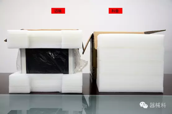 在儀器包裝上,科曼NC12和IPM12都是采用珍珠棉進(jìn)行包裝,但科曼NC12采用360°無死角的全包裹方式,雖然看起來臃腫,但是更能保證儀器在運(yùn)輸途中的安全;邁瑞IPM12采用半包裹的方式,看起來簡潔清爽,但存在一定的安全隱患。