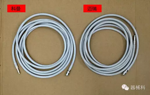 科曼采用防除顫分體夾式5導(dǎo)聯(lián)線,分纜長度為LA,RA,V導(dǎo)聯(lián)1米;RL,LL導(dǎo)聯(lián)1.6米;邁瑞采用防除顫一體扣式5導(dǎo)聯(lián),分纜統(tǒng)一為0.6米,主纜部分長度一樣。導(dǎo)聯(lián)線上的分纜,容易損壞。如果只是分纜換了,分體式只用換掉分纜就行了,而一體式只能換掉附件,減少不必要的浪費(fèi),提高使用率,節(jié)約成本。