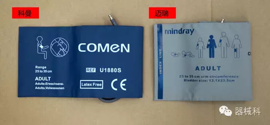 兩家都采用防水面料和薄膜氣囊??坡伾睿恢朗遣皇且驗樯钌团K。袖套看起來要厚點,不過摸起來也一樣柔軟。邁瑞是不經(jīng)臟的白色,拿起來會發(fā)現(xiàn)更柔軟?;蛟S是深色顯得明亮,對比之下,總覺得邁瑞的袖套看起來舊舊的。