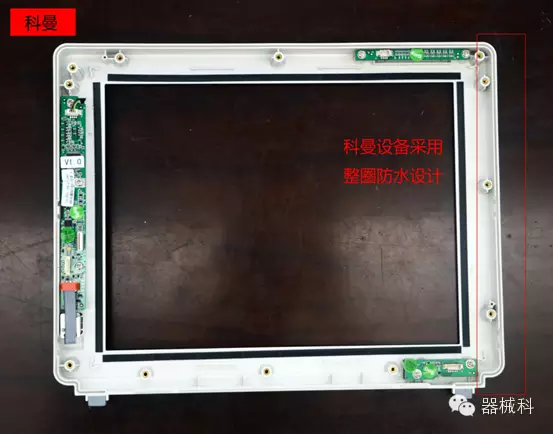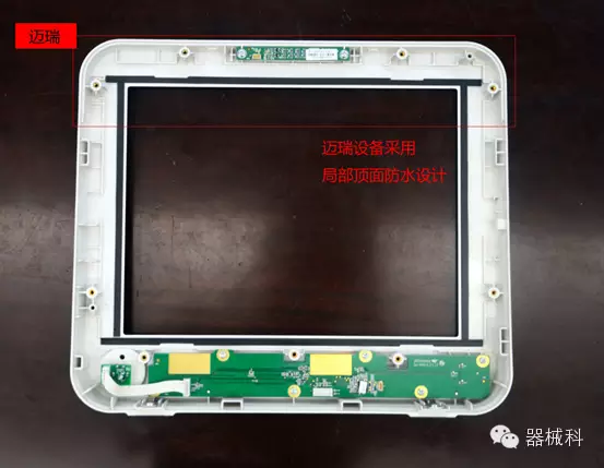 防水是所有電子類產(chǎn)品的一個重要功能。如果防水功能設(shè)計不好,儀器很容易受潮,從而引起使用不便,嚴重的將會報廢。科曼前后殼之間采用硅膠密封線整圈的防水設(shè)計,做工更麻煩,耗材多,但更安全;邁瑞前后殼之間采用硅膠密封線頂部的局部防水設(shè)計,省時省料,但存在安全隱患。