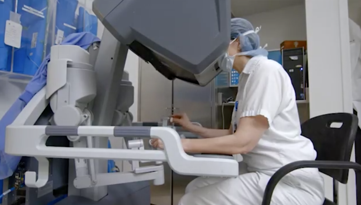 外科醫(yī)生從位于手術(shù)室的控制臺控制這些儀器和攝像機。將手指放入主控制器中,他能夠同時操作達芬奇的所有四個手臂,同時通過立體高清顯示器觀察,將他放在患者體內(nèi),為他提供更好,更詳細的三維視圖操作現(xiàn)場比人眼可以提供的。他使用主控件進行的每個動作都由機器人精確復制。必要時,外科醫(yī)生甚至可以改變機器人運動的規(guī)模:如果他選擇一個三比一的比例,機器人手臂的尖端每移動三英寸就會移動一下。由于控制臺的設(shè)計,外科醫(yī)生的眼睛和手總是完全符合他對手術(shù)部位的看法,