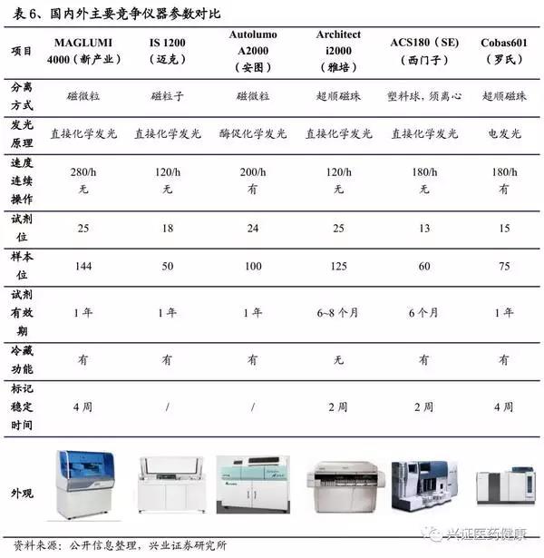 從以上進(jìn)程可看出,技術(shù)到位、價(jià)格優(yōu)勢(shì)以及找準(zhǔn)市場(chǎng)切入口是其完成進(jìn)口替代的關(guān)鍵。發(fā)光行業(yè)與生化行業(yè)有其區(qū)別,發(fā)光本質(zhì)為免疫反應(yīng),各廠家的技術(shù)平臺(tái)完全不同,為保證結(jié)果的準(zhǔn)確性和穩(wěn)定性,將迫使檢驗(yàn)人員使用同一廠家提供的試劑和分析儀。在各大醫(yī)院對(duì)于各個(gè)項(xiàng)目的檢查都基本專(zhuān)機(jī)專(zhuān)用,未來(lái)也很難將其開(kāi)放化。所以,在發(fā)光的進(jìn)口替代進(jìn)程中,試劑和儀器的一體化研發(fā)是必須的。國(guó)內(nèi)化學(xué)發(fā)光龍頭企業(yè),例如,新產(chǎn)業(yè)、安圖生物、邁克生物等都具備試劑和儀器的一體化研發(fā)能力。參考生化的替代道路,5年內(nèi)將爆發(fā)大規(guī)模進(jìn)口替代。