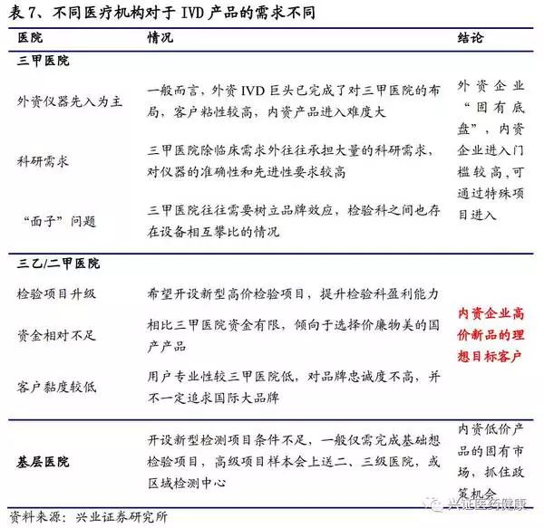 在進(jìn)口替代的進(jìn)程中,應(yīng)先分析終端的需求情況,以找準(zhǔn)定位,獲得收益。醫(yī)院在選用儀器的時(shí)候,主要有技術(shù)偏好和價(jià)格偏好,不同級(jí)別的醫(yī)院考慮的優(yōu)先度會(huì)有所不同,所以對(duì)其分類(lèi)討論以找準(zhǔn)市場(chǎng)至關(guān)重要。