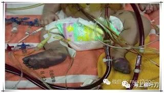 這是一個出生一個半月、先天性心臟病的嬰兒,心臟手術(shù)以后,沒有辦法脫離心肺機,所以就裝了葉克膜。
