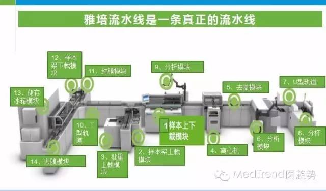 縱觀IVD國(guó)際品牌的發(fā)展歷程,都是從低速生化朝高速生化發(fā)展,由單機(jī)朝向集成化、自動(dòng)化、流水線的方向發(fā)展。由于中國(guó)病人的過(guò)度集中于大型三級(jí)醫(yī)院,年收入超過(guò)10億的醫(yī)院每天樣本量超過(guò)1000個(gè),高速儀器是高端醫(yī)院的剛需,因此研發(fā)高速儀器的能力也是未來(lái)進(jìn)入大型公立醫(yī)院的前提要求,流水線、生化免疫聯(lián)機(jī)是大勢(shì)所趨。