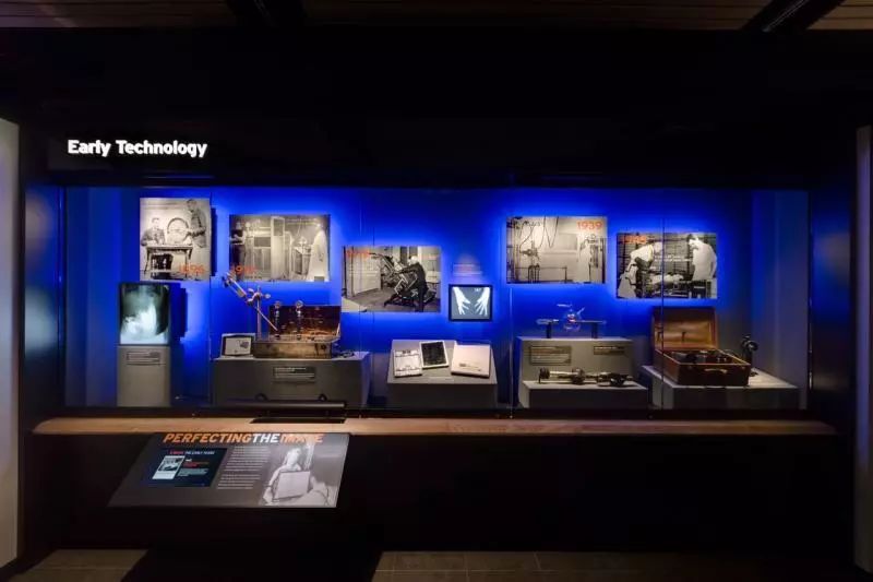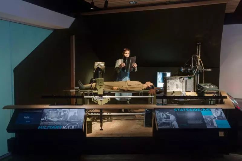 除了交互式組件外,還展出了許多老式設(shè)備,包括Picker透視裝置,1935 GE便攜式“手提箱模型”X射線裝置和第二次世界大戰(zhàn)的軍用X射線裝置。展出了300多件文物。