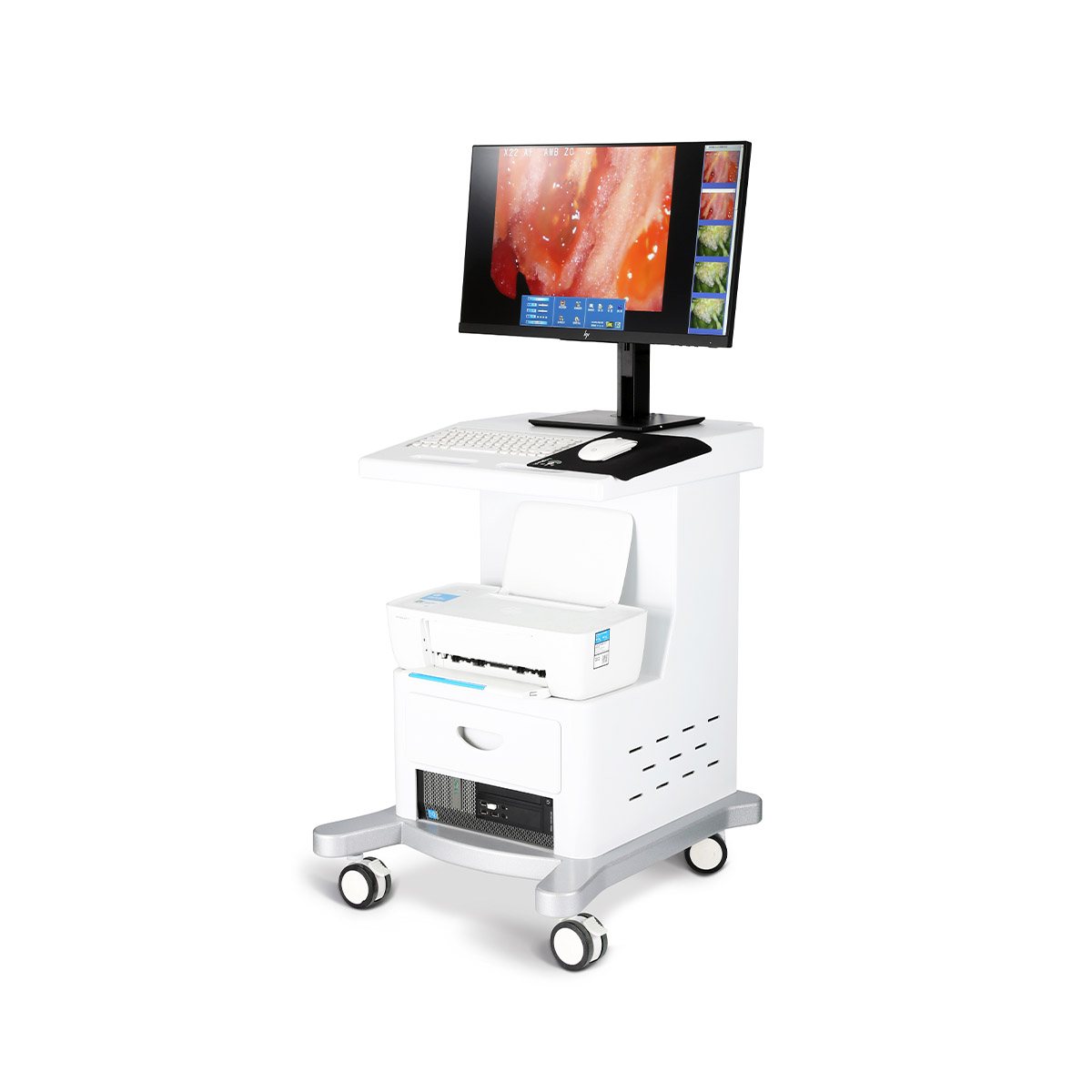 內(nèi)置多圈環(huán)形高亮LED白色光源機(jī)構(gòu);搭配三級濾光功能、醋酸反應(yīng)計(jì)時(shí)功能、品牌電腦配置、直立式支架可自由升降實(shí)時(shí)動態(tài)的圖像處理功能:放大、縮小圖像、凍結(jié)、采集、錄像回放、自動聚焦、存儲、再現(xiàn)、圖像處理、多光源切換等。